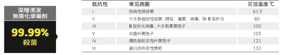 * 不同的细菌除菌率略有不同,针对白色葡萄球菌为99.99%