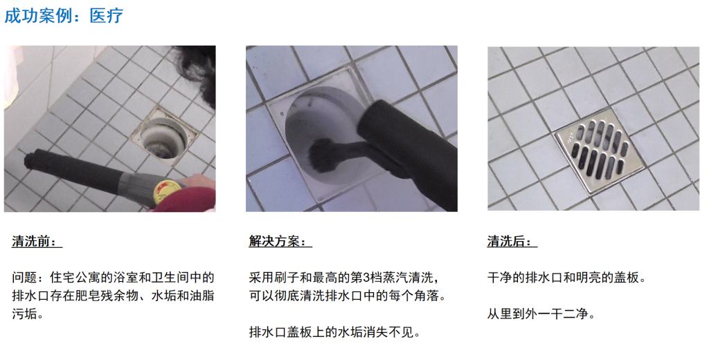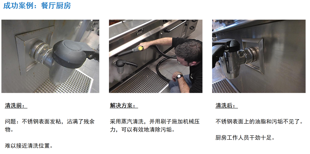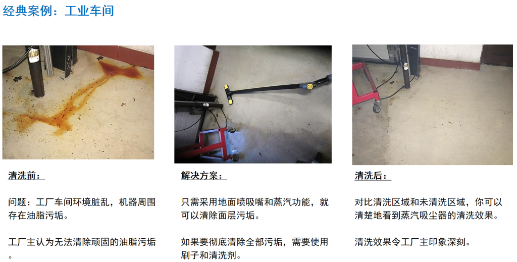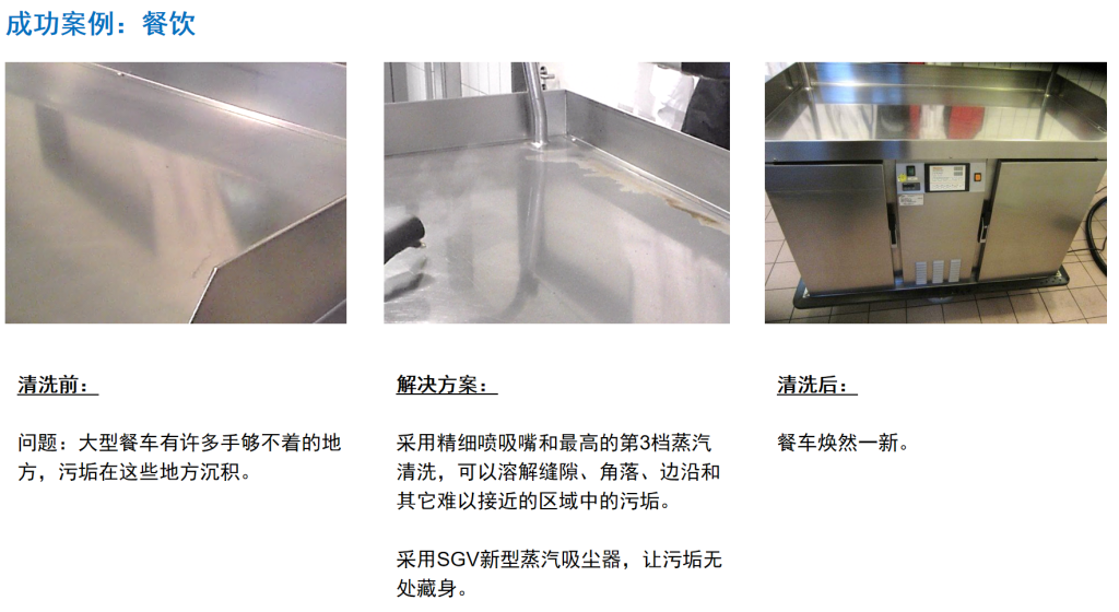 充分满足客户在蒸汽清洗方面的要求,适用于多种应用领域。SGV结合了蒸汽清洗机和吸尘器两种机器的功能。因此,使用者可以在一个步骤中同时完成蒸汽清洗和冷凝水吸除两件事情(一步法)。产品的主要概念是:操作简便、设有专门的清洗程序、附件取用方便。